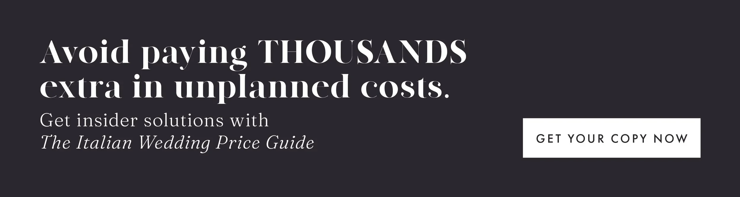 You can see Meg + Olly’s full budget breakdown in The Italian Wedding Price Guide. It’s your ultimate answer to decoding the costs, understanding commissions, ‘added’ costs and planning with confidence.