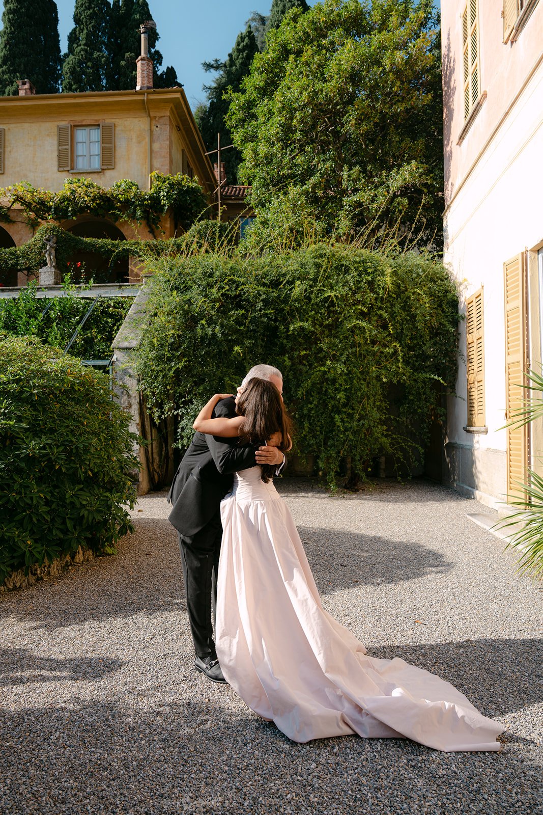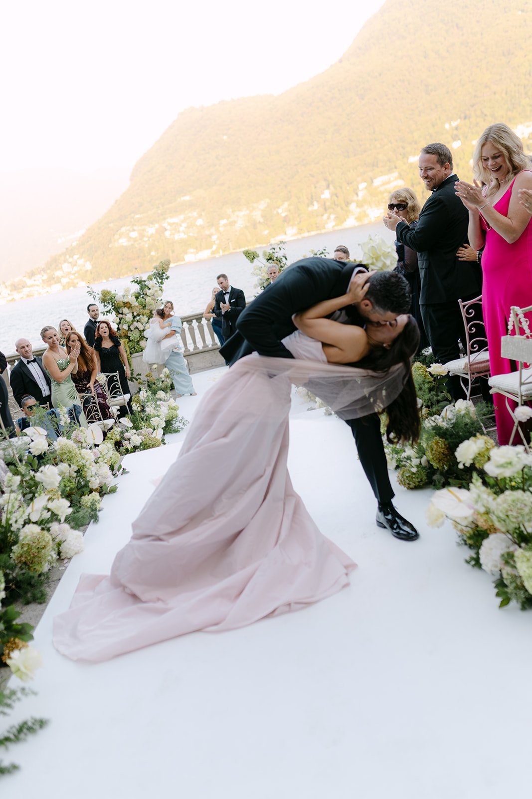 “Our style was a blend of modern and vintage, which felt perfectly in tune with Villa Pizzo. The villa’s historic charm naturally brought in a vintage element, while details like my rose-colored wedding gown added a modern edge.