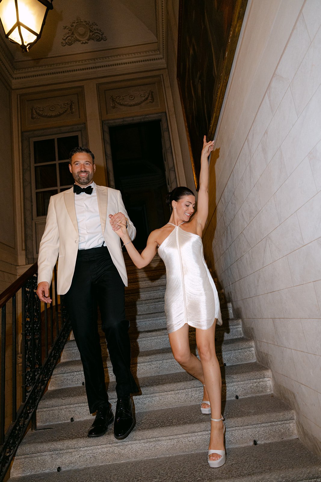 “Anthony had originally planned to propose at a vineyard in Long Island, but fate had other plans, he came down with COVID, and the proposal had to be postponed. A few weeks later, while we were living in Philadelphia during the pandemic, we went rollerblading after work, something we love to do together. As we reached the pier, he dramatically fell to the ground. I thought he had hurt himself, but before I knew it, he was asking me to marry him. That night we went to an omakase dinner, another favorite of ours, and the next day he surprised me with an intimate family gathering in Brooklyn with both our immediate family and best friends.”