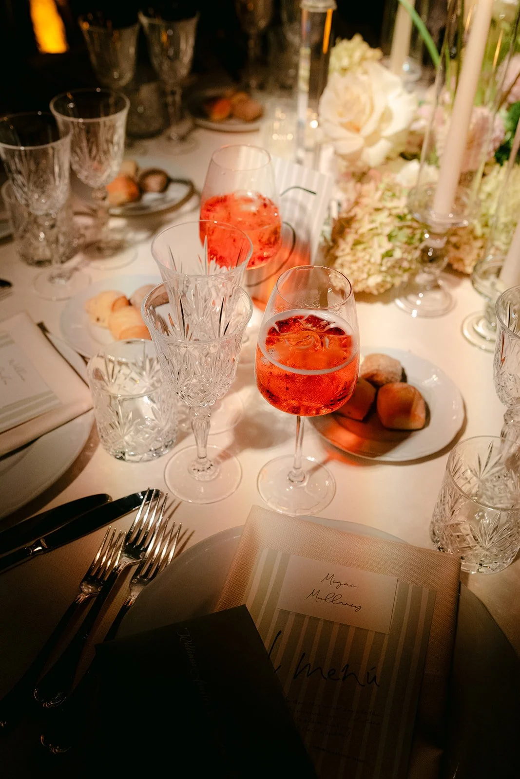 “We envisioned a romantic, candlelit atmosphere, so incorporating an abundance of candles to create a soft, dim glow was important to us.”