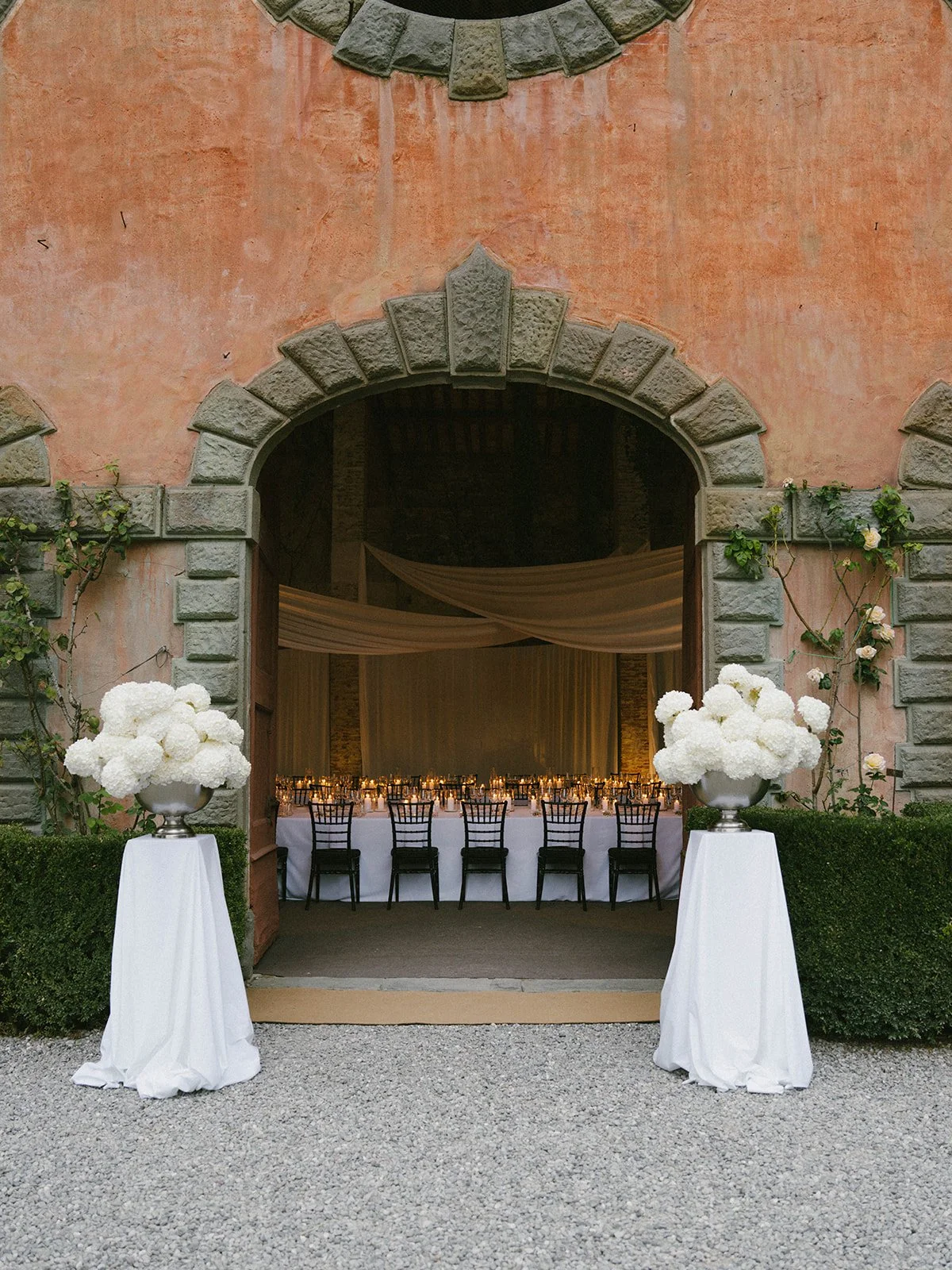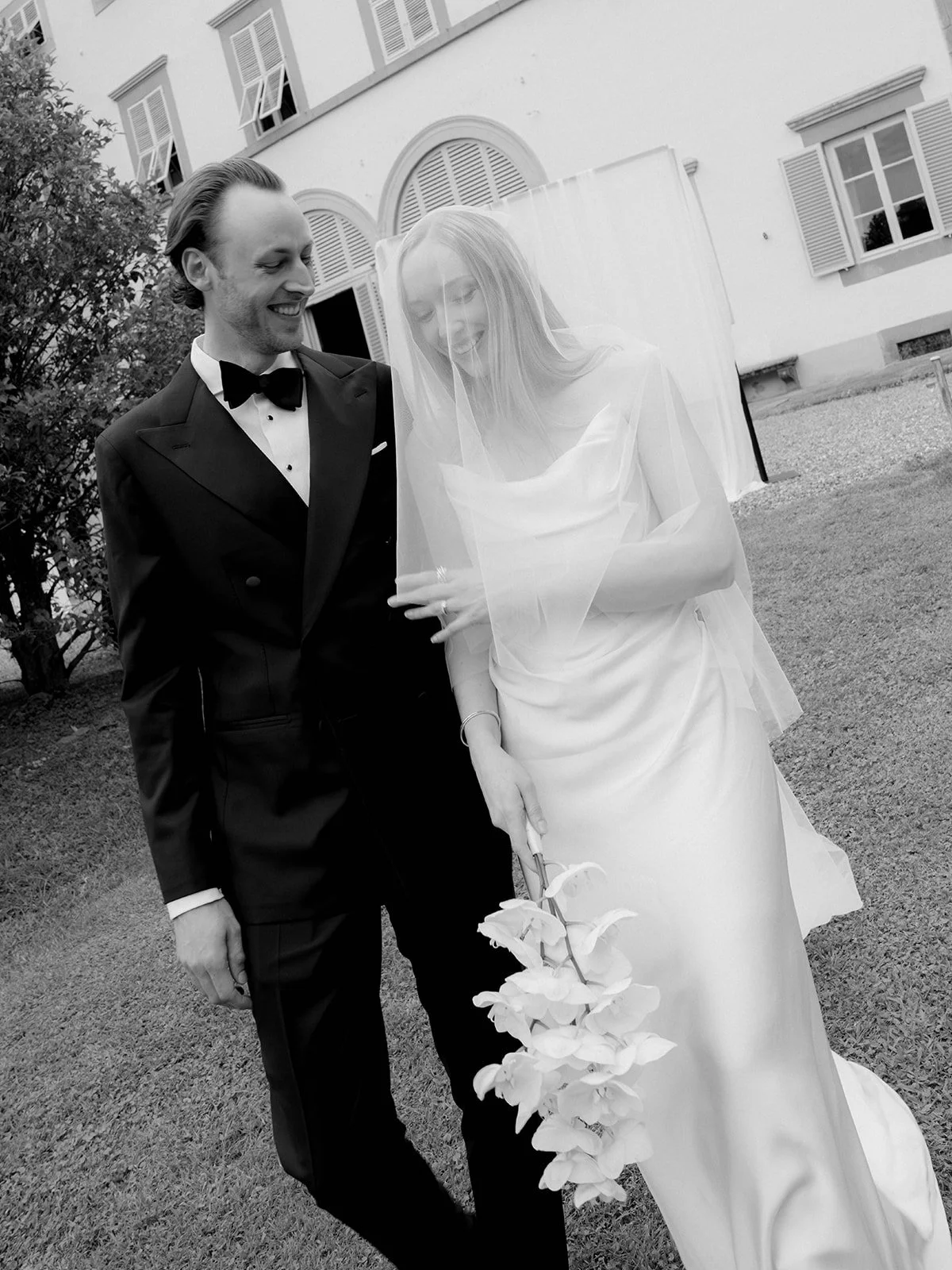 Hannah + Julian’s elevated black-tie Tuscan wedding