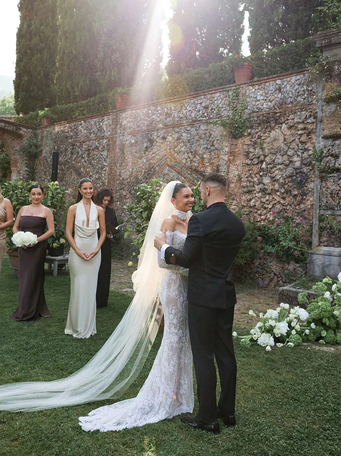 Photographer: Lou Lou Memphis | Venune: Villa Catureglio | Wedding Planner: Laura Ferrari Weddings | Videographer: Sommar Films | Content Creation: Jag Creative Studio | Hair: Livinia Inserra | Makeup: Sheridan MUA | Florist: Sabrina Barsanti Fiori | Catering: Del Carlo Catering | DJ: DJ NASCIO | Ceremony Dress: Berta, Raffaele Ciuca | Shoes Jimmy Choo | Bride's Jewellery: Sundaratā Bridal Jewellery | Suits: Germanicos