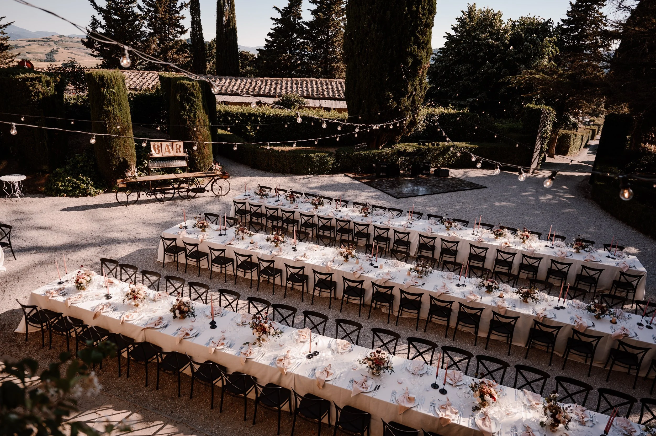 The panoramic views of the Tuscan countryside from the venue were just incredible, especially during sunset!” Taylor-Hughes Photography
